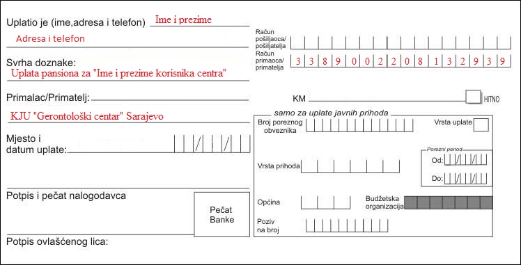 Uplata pansiona za boravak, lijekova iii pelena možete izvrštiti i putem uplatnice.