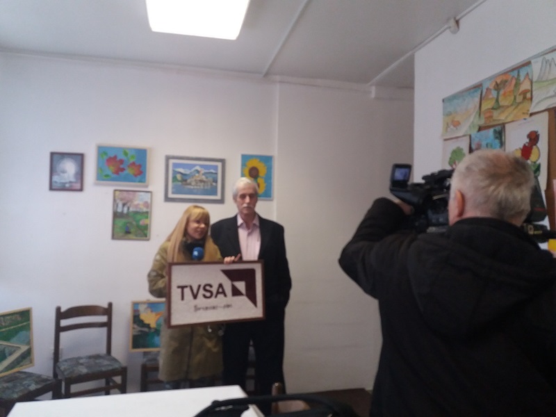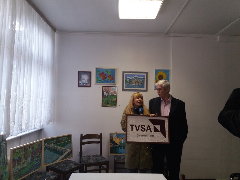 Korisnik Gerontološkog centra, Bešić Mugdin poklonio je i uručio svoj ručni rad voditeljici Brankici Rudan sa logom TVSA prenosom uživo za Jutarnji program.